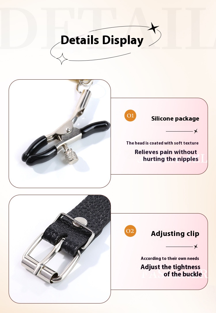 Accessories and sizes: total length 62CM * 2CM, mouth ball 4.5cm, chain 30CM, nipple clamp opening 2CM, Bell 1CM * 1.5CM