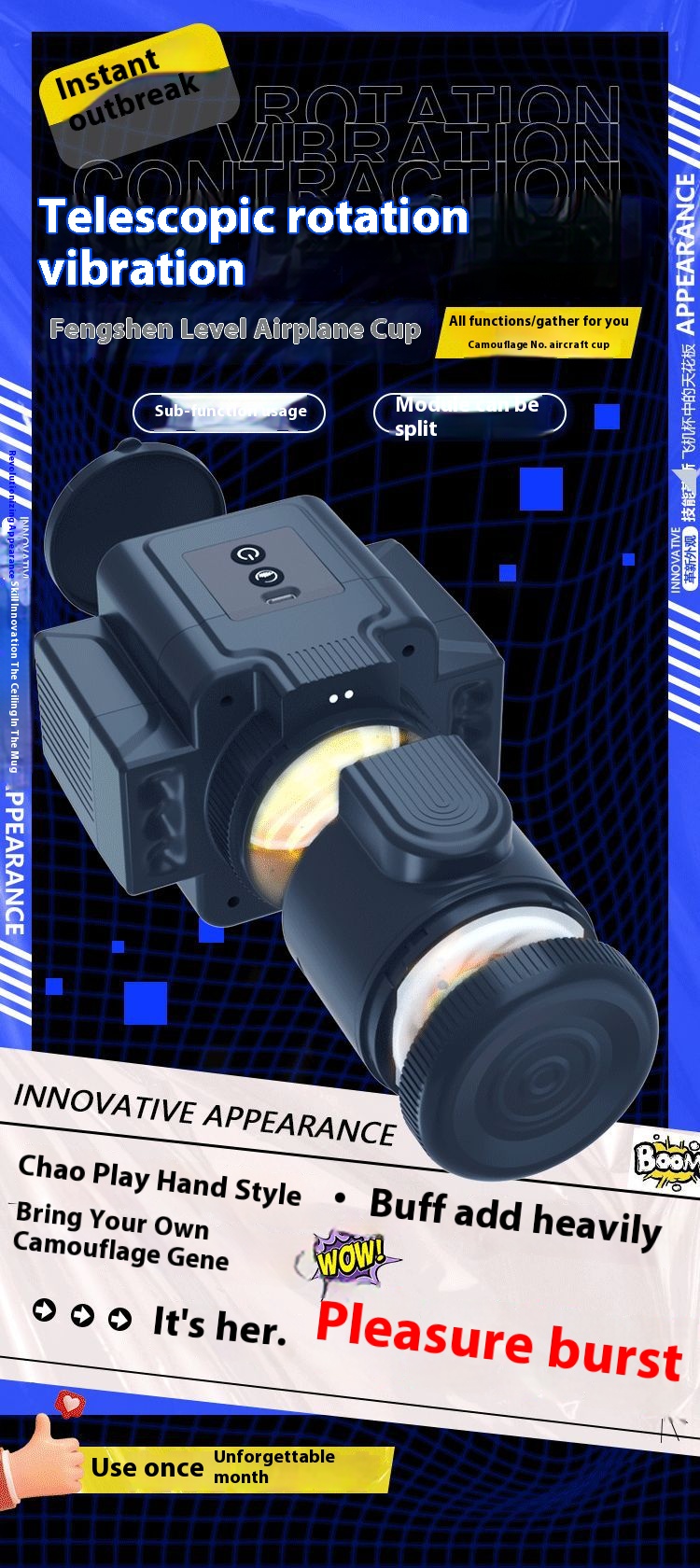 Uomini masturbazione automatica Coppa fotocamera rotante telescopica vibrazione aerei Coppa uomini esercitatore giocattoli del sesso