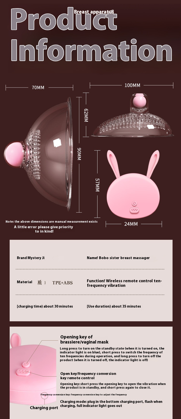 Mei Mei size: 90*90 * 70mm remote control: 57*24 * 52mm