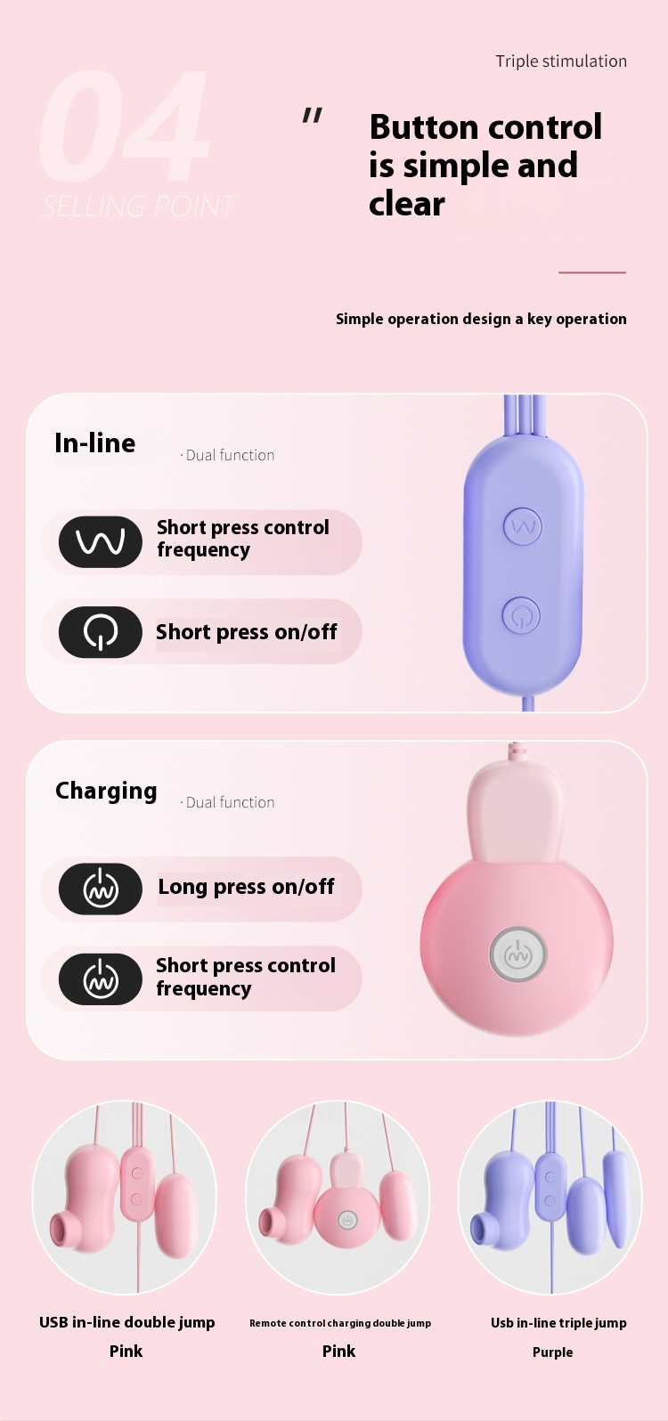 Spina diretta USB rosa-doppio salto 6976309821513 ,Telecomando rosa di ricarica-doppio salto 6976309821841 ,USB diretto viola a tre punti di accesso 6976309821520 |
