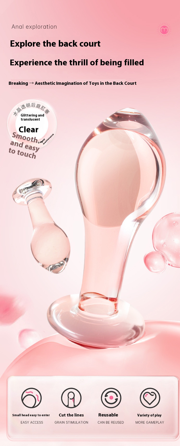 Main function/selling point: glass butt plug, safe and non-toxic, easy to clean, no odor, can be heated and frozen.
